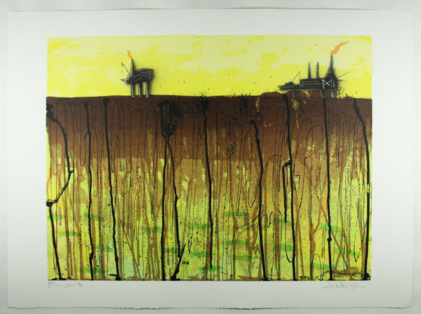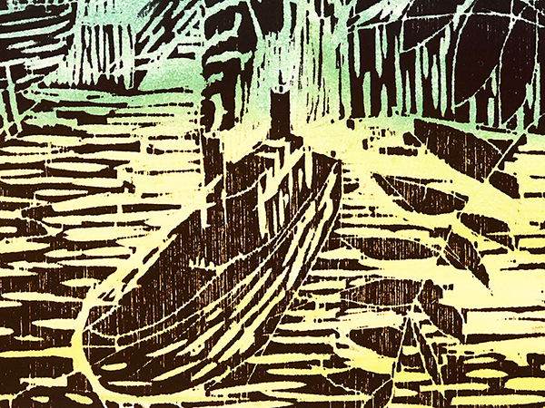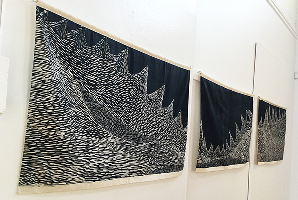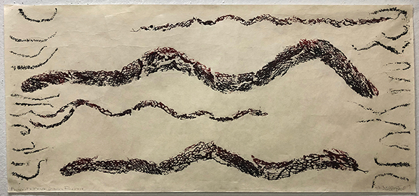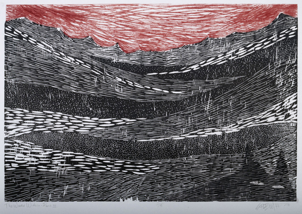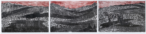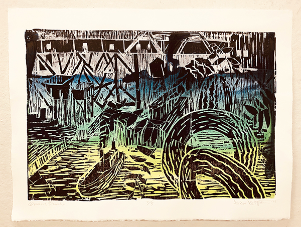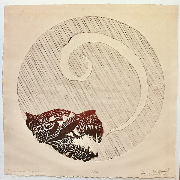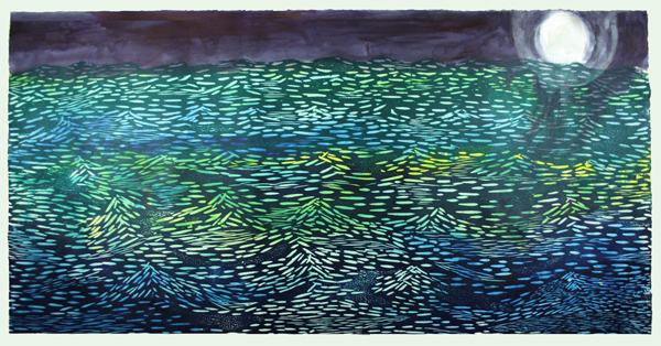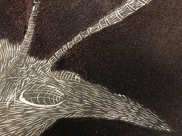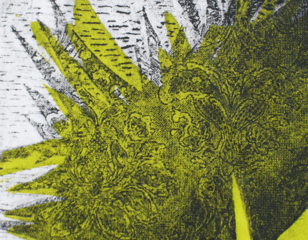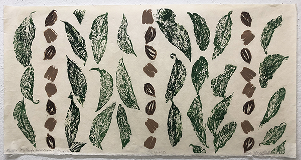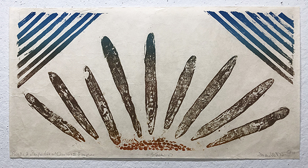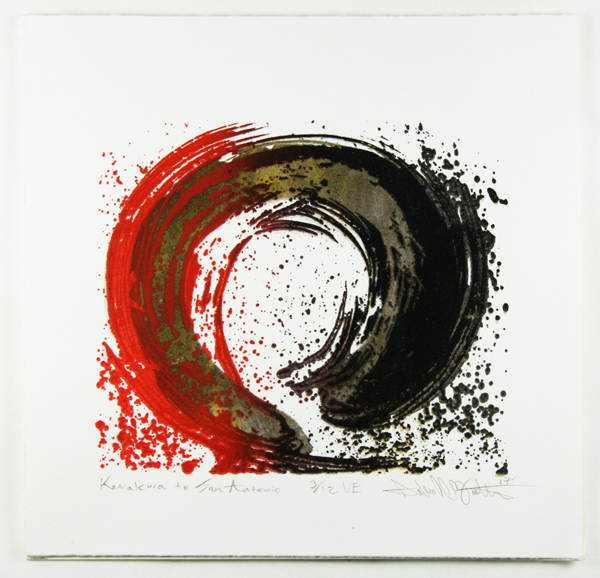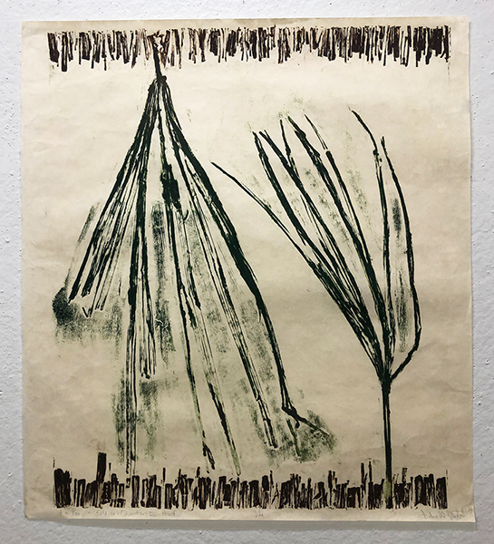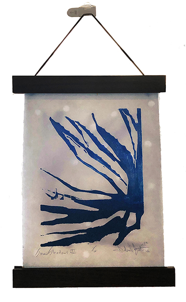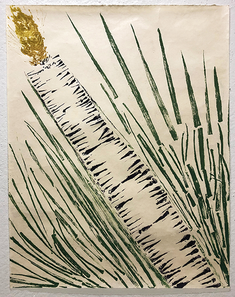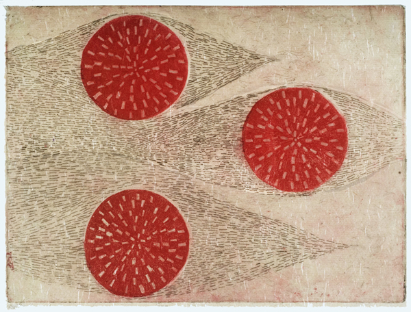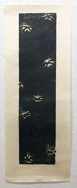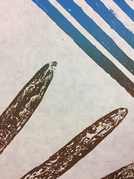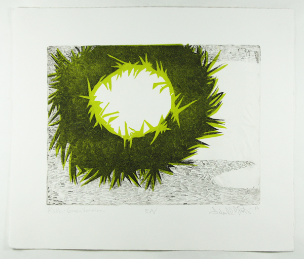 While on a Fulbright residency In Finland, I studied the rich heritage of Scandinavian design. This research led to further simplified forms. Natural objects are magnified and cropped until they become otherworldly. Like a 19th century naturalist, I often sketch and paint flora and fauna on site. I use these drawings as touchstones for my studio work. I might base an edition of fine art prints on a sketch or re-create it on a larger scale. Design considerations are evident through the implementation of graphic line, negative space, actual texture, and limited color. I typically create an interplay between the gestural fluidity of water media and the structural line work of drawing or printmaking processes. More recent trips to Japan have also had an important impact on my work. As a printmaker, I work in a variety of mediums including collagraphs, etching, mixed media prints, screenprints, and woodcut. Go to Special Projects and Animations to see work associated with these prints.