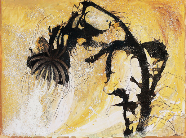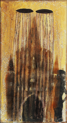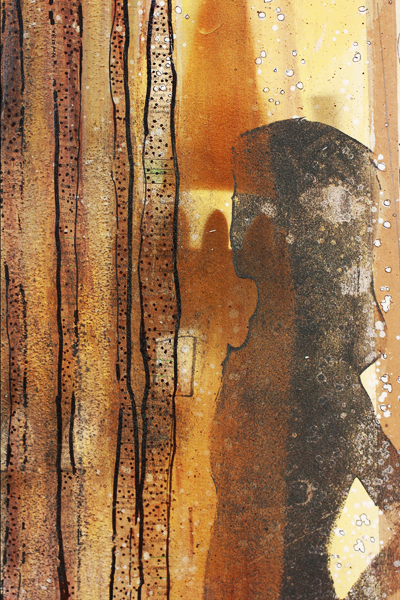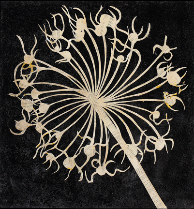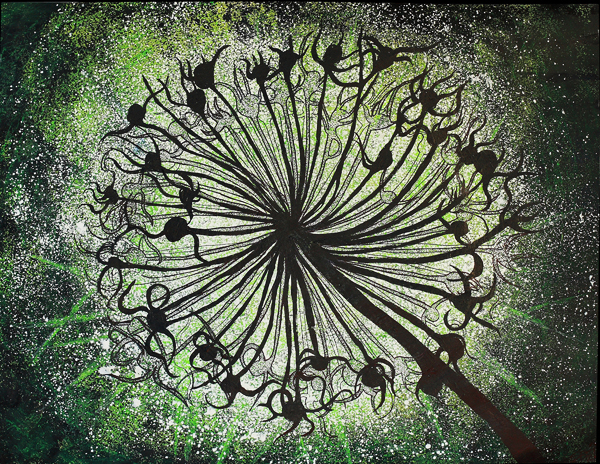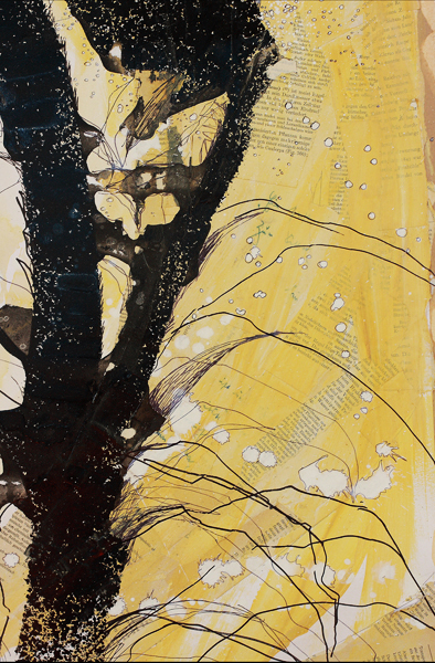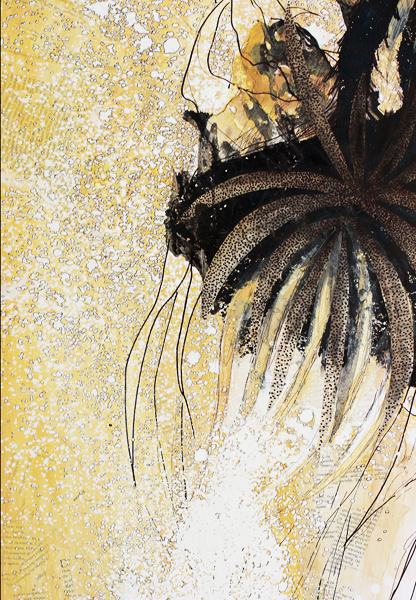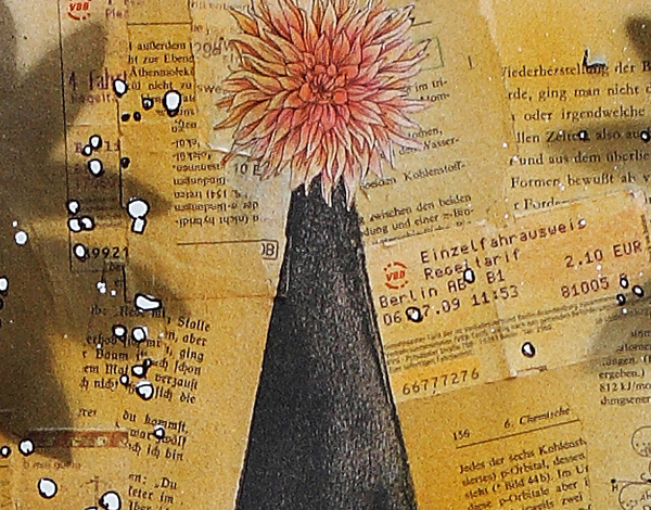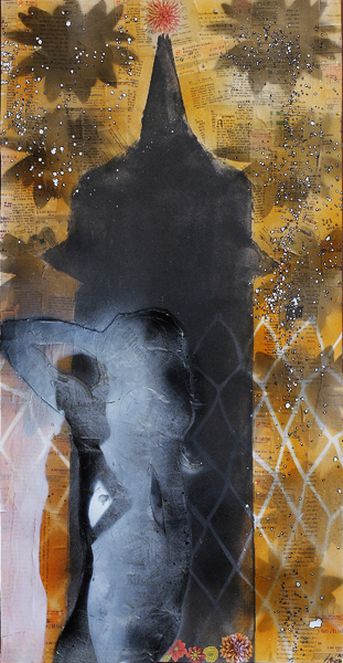During a 2009 artist residency in Berlin, I worked on large mixed media works of plant forms that I collected throughout the city. In the summer, Berlin is a lush, green place with flowers everywhere. In the midst of all this fecundity, there is also the weight of history captured by architectural remnants of past times. This is a very textural city. Ubiquitous posters layer on top of each other along with stains, mold, graffiti and stickers. I find beauty in this chaotic layering which becomes a metaphor for the city itself. Overall, the Schattengarten series is an attempt to explore my own internalized response to the environment and people of Berlin and Germany.
