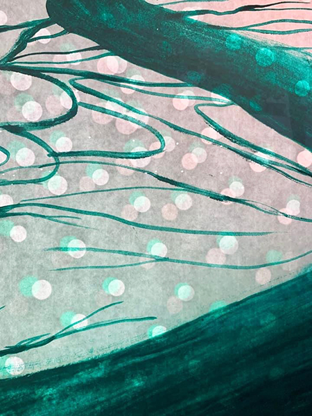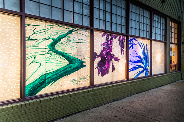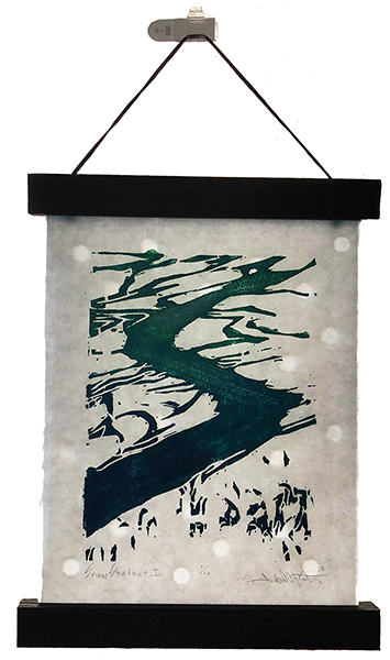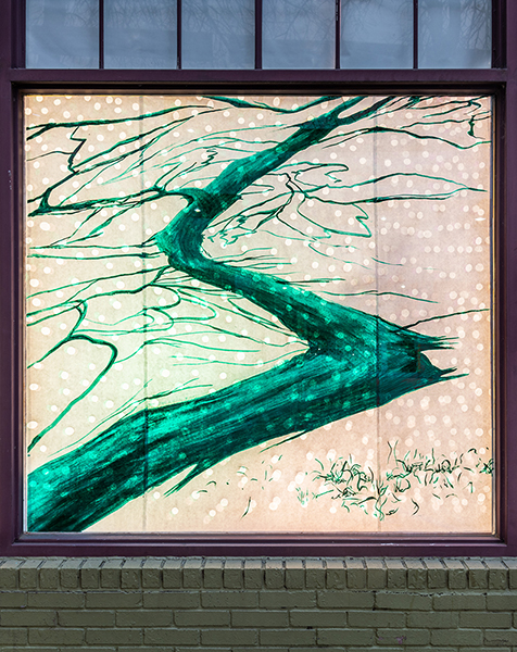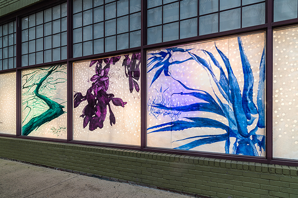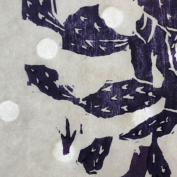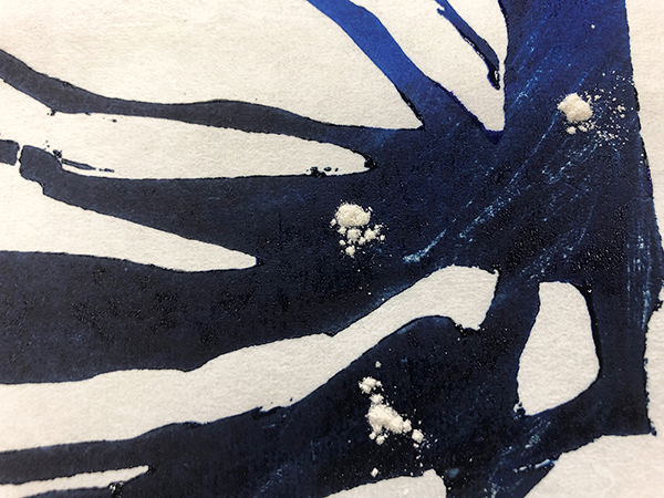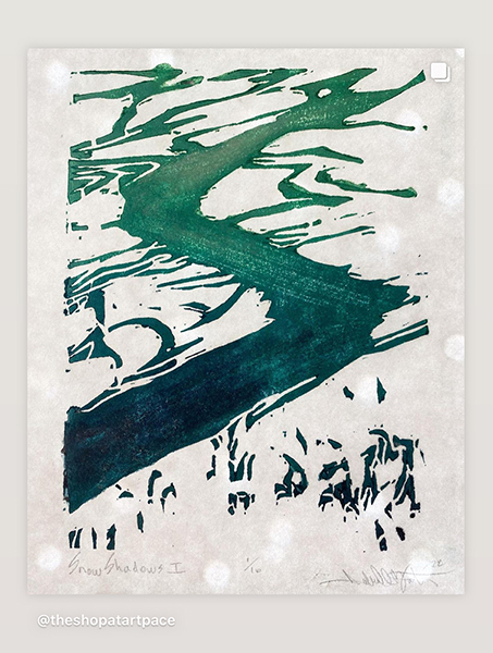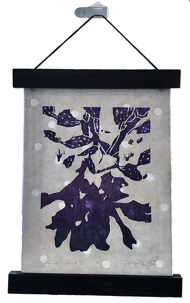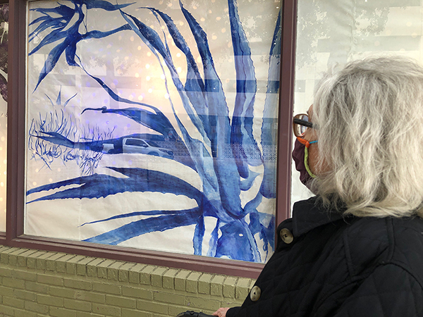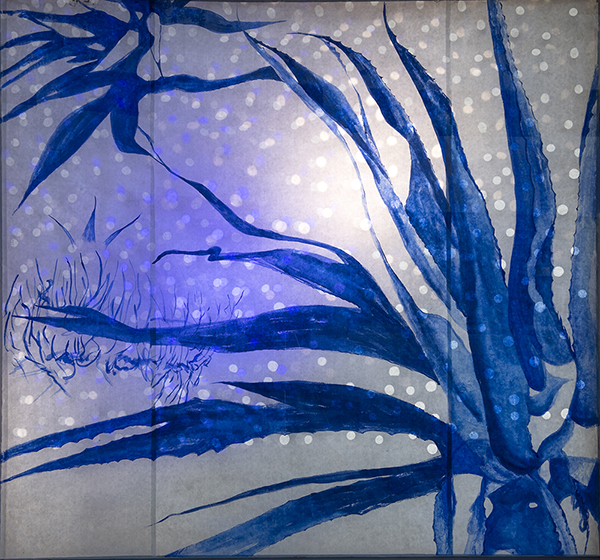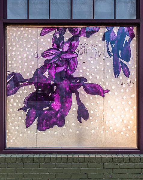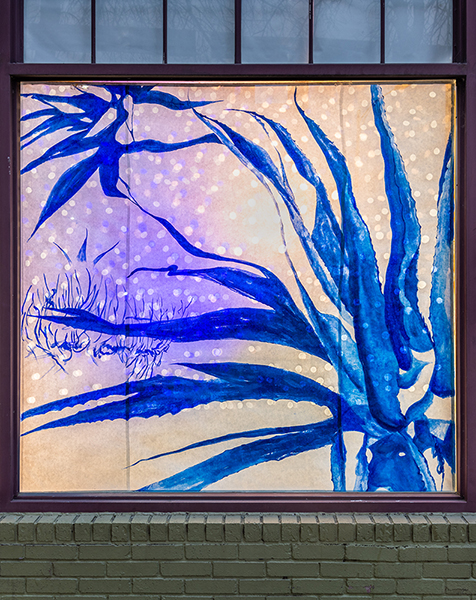 Our first Main Space exhibition this year features local artist and City of San Antonio Department of Arts & Culture 2022 Individual Artist Grant recipient, Sabra Booth. Snow Shadows will be on view January 20–May 8, 2022. Booth’s studio practice offers interpretative observations of nature, while addressing complex ecological issues, and her Main Space exhibition further explores this interest. In February 2021, what began as a rare and exciting opportunity for Texas residents to experience significant snowfall turned devastating as the Texas power grid failed, causing rolling black outs across most of the state. The freezing temperatures also lead to disrupted water service, that combined with power loss forced some to flee their homes to seek safe shelter elsewhere. Snow Shadows documents the events of winter storm Uri by replicating shadows from frozen and dying plants. “Plants were irreparably frozen, including some from my own yard, such as iconic San Antonio species, agaves and prickly pears,” said Booth. Utilizing non-toxic Akua Pigments® on large sheets of kōzo paper, coated with a pearlescent powder, Booth’s abstract paintings will fill the Main Space gallery windows, allowing natural light to filter through the paper, illuminating the paintings. She also will have prints available in the gift shop using moku hanga techniques in wood cut. The artist purposefully creates light, playful paintings to signify the events of the winter storm in the hope that the installation will encourage reflection on both the unexpected beauty and perils prompted by climate change.