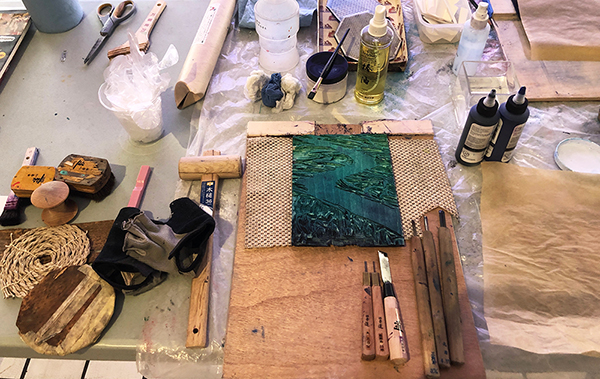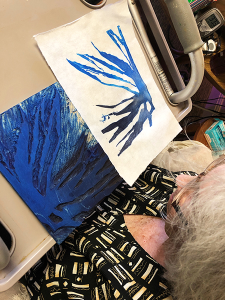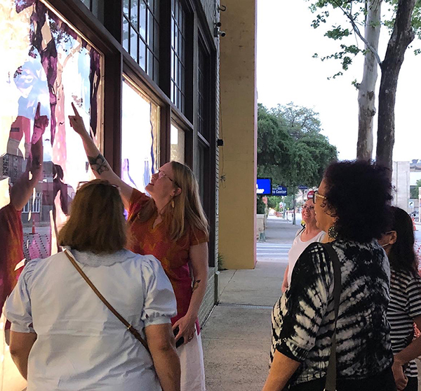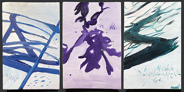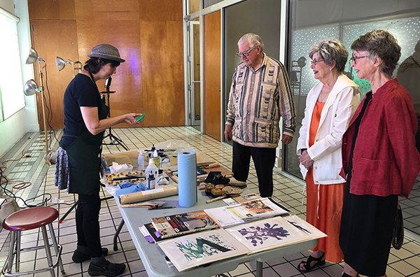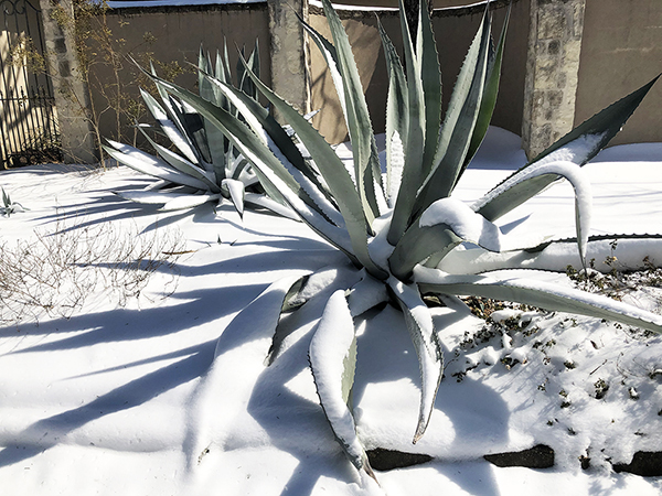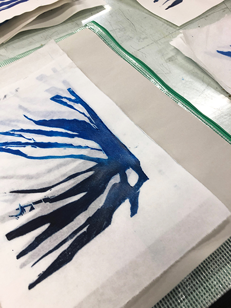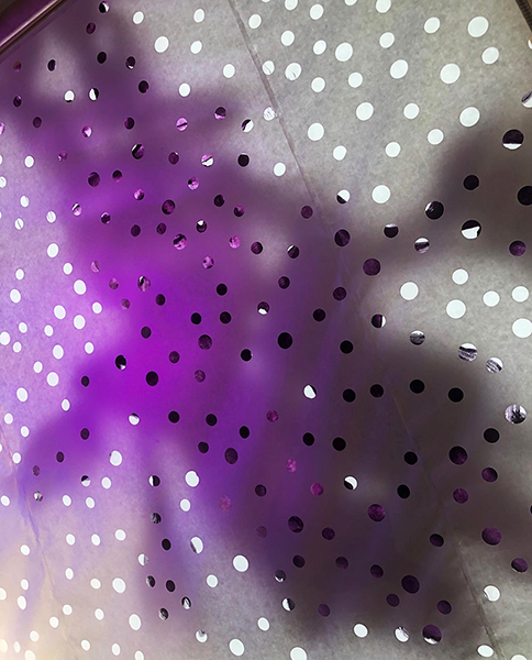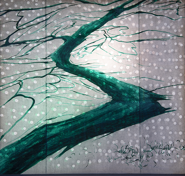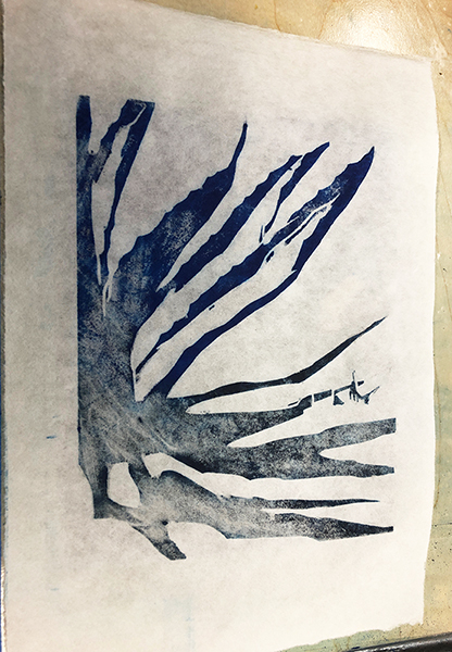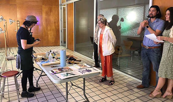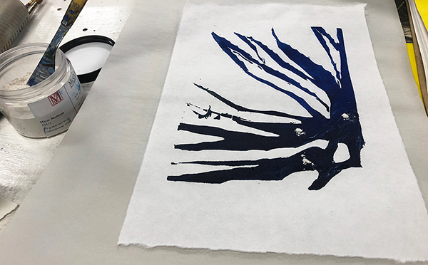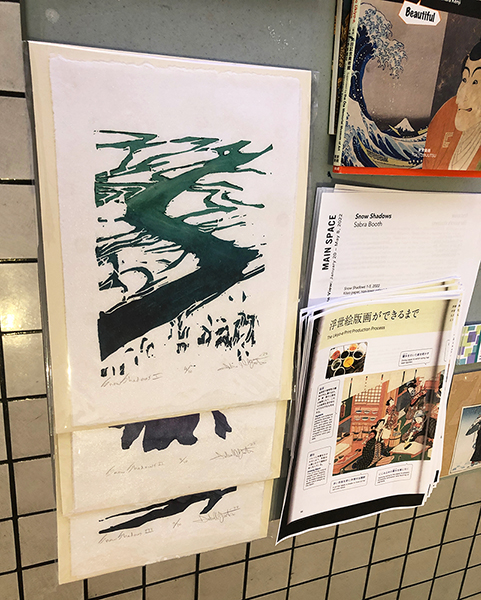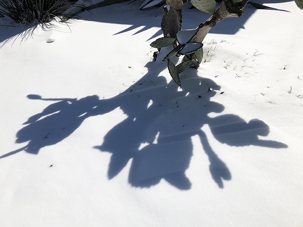 Our first Main Space exhibition this year features local artist and City of San Antonio Department of Arts & Culture 2022 Individual Artist Grant recipient, Sabra Booth. Snow Shadows will be on view January 20–May 8, 2022. Booth’s studio practice offers interpretative observations of nature, while addressing complex ecological issues, and her Main Space exhibition further explores this interest. In February 2021, what began as a rare and exciting opportunity for Texas residents to experience significant snowfall turned devastating as the Texas power grid failed, causing rolling black outs across most of the state. The freezing temperatures also lead to disrupted water service, that combined with power loss forced some to flee their homes to seek safe shelter elsewhere. Snow Shadows documents the events of winter storm Uri by replicating shadows from frozen and dying plants. “Plants were irreparably frozen, including some from my own yard, such as iconic San Antonio species, agaves and prickly pears,” said Booth. Utilizing non-toxic Akua Pigments® on large sheets of kōzo paper, coated with a pearlescent powder, Booth’s abstract paintings will fill the Main Space gallery windows, allowing natural light to filter through the paper, illuminating the paintings. She also will have prints available in the gift shop using moku hanga techniques in wood cut. The artist purposefully creates light, playful paintings to signify the events of the winter storm in the hope that the installation will encourage reflection on both the unexpected beauty and perils prompted by climate change.